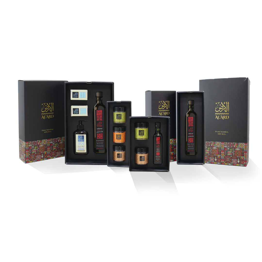Fiecare cutie este o combinație de produse palestiniene 100% naturale, autentice și artizanale, create cu grijă de fermieri și meșteșugari locali.