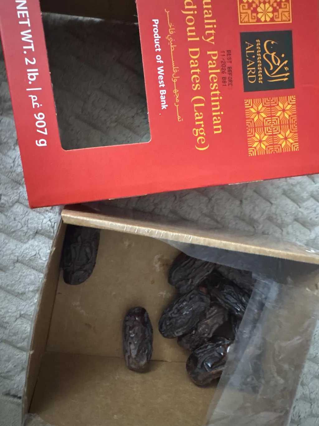 Bucură-te de Curmalele Medjoul Palestiniene, cunoscute ca "Regele Curmalelor" datorită dimensiunii mari, texturii moi și gustului intens caramelizat. Cultivate în oazele fertile ale Palestinei, aceste curmale sunt 100% naturale, fără zahăr adăugat, bogate în fibre, antioxidanți și minerale esențiale.